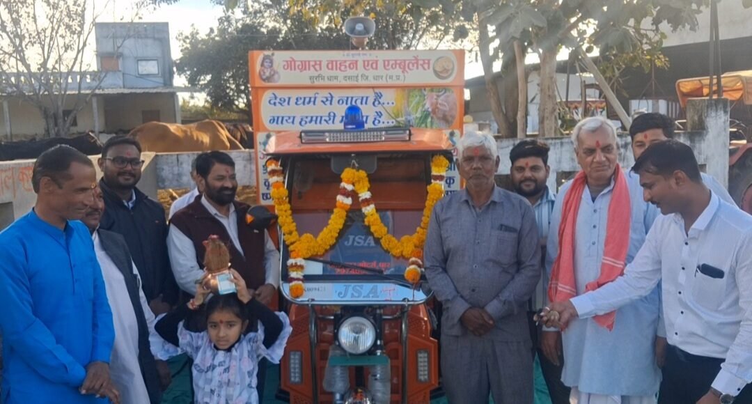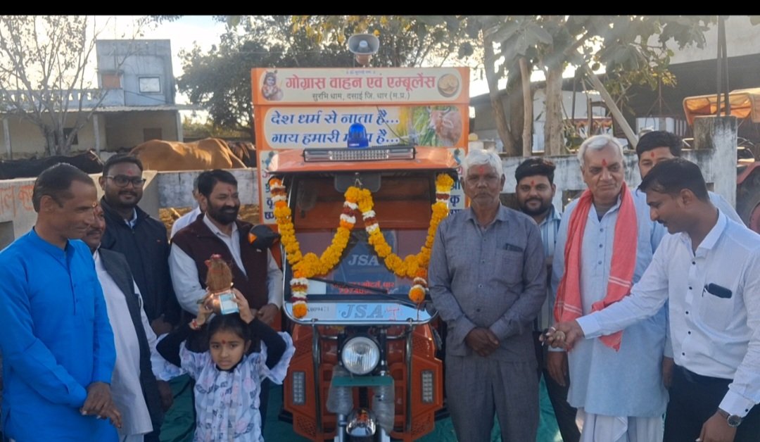 मध्यप्रदेश के धार जिले सरदारपुर तहसील दसई मे प्रसिद्ध श्री गोपाल क्रष्ण् गौशाला मे आज नया गौ ग्रास व ऐंबुलेंस वाहन मिला, शुभ मुहूर्त मे दसई के प्रसिद्ध ब्राह्मण गोवर्धन जोशी व गजेंद्र पौराणिक द्वारा मंत्रोच्चार के साथ विधि-विधान से पुजा करवाकर ओमकार मोटर्स धार के डायरेक्टर विकास पांडे ने गौशाला अध्यक्ष अशोक सिंह रघुवंशी व रामनारायण पाटीदार को वाहन की चाबी सौपी गई।अशोक सिंह रघुवंशी ने बताया कि ये वाहन गौ ग्रास के नगर मे सभी गौ भक्तो के द्वारा द्वार पर पहुंचेगी, गौ शाला की गौ माताओं की सेवा का लाभ सभी को मिलेगा। यह गौ ग्रास रथ नई तकनीकी के साथ हेड्रोलिक व्यवस्था से सुसज्जित है ओर अगर कोई गौ माता बिमारी की स्थिति मे कही भी हो उसे तत्काल हास्पिटल तक पहुँचाने का कार्य भी यह ऐंबुलेंस का कार्य भी करेगी तत्काल इमर्जेंसी हालात मे हास्पिटल पहुचाने का कार्य करेगी। इस अवसर पर समिति के वरिष्ठ सदस्य राधेश्याम विश्वकर्मा,,राजकुमार पाटीदार, जयेश पाटीदार, इंदरदास बैरागी,दीपक पाटीदार, निगम पाटीदार घनश्याम भीमाजी, राधेश्याम पाटीदार सहित अन्य युवा संघ एंव गौ शाला सेवक सहित अन्य गणमान्य गौभक्त मौजूद थे।